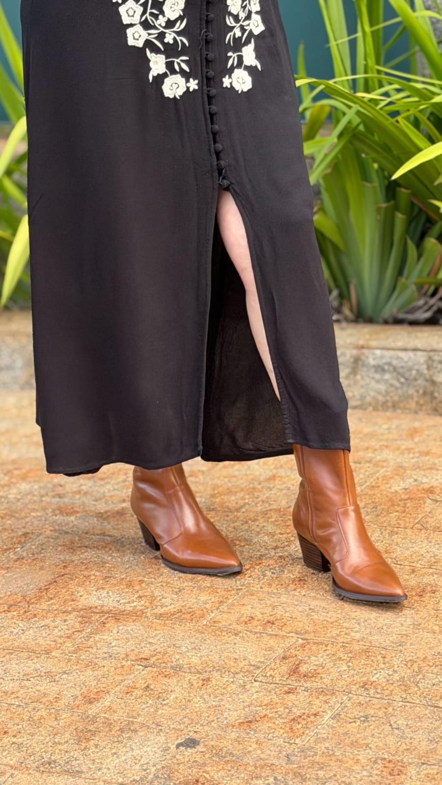 A bota Judy tem bico alongado e salto bloco com design western. As costuras nos lugares estratégicos trazem charme extra ao modelo. Atemporal, é a opção certeira para te acompanhar no seu dia a dia. Garanta a sua!