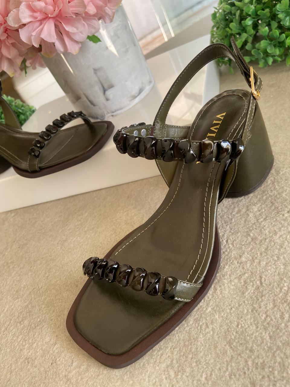 A sandália possui tiras com acabamento em pedras resinadas. A estampa croco envernizadas garante bossa extra ao modelo, traduzindo a tendênica da temporada. Perfeita para ser sua queridinha nesta estação, aposte!!