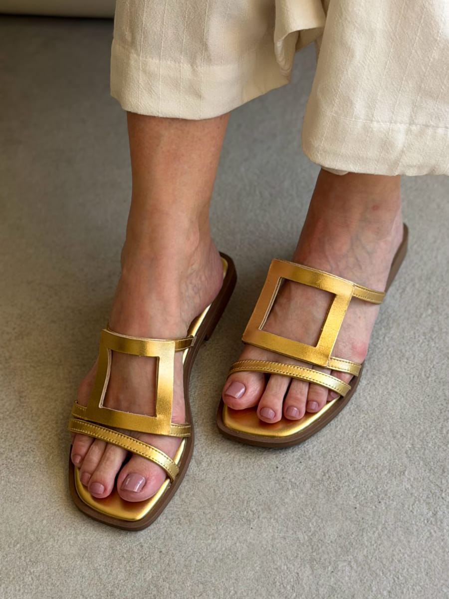 Moderna e elegante, a rasteira Helo traz o visual minimalista das tiras finas. Ideal para produções casuais com um toque sofisticado, é a escolha certa para compor looks de verão com leveza e estilo.