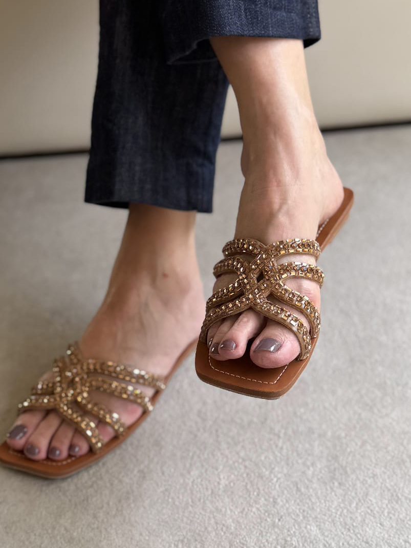 A rasteira com tiras espelhadas é perfeita para adicionar um toque moderno e jovem nas produções de verão. Transita bem com peças do dia a dia quanto em produções noturnas . Aposte!