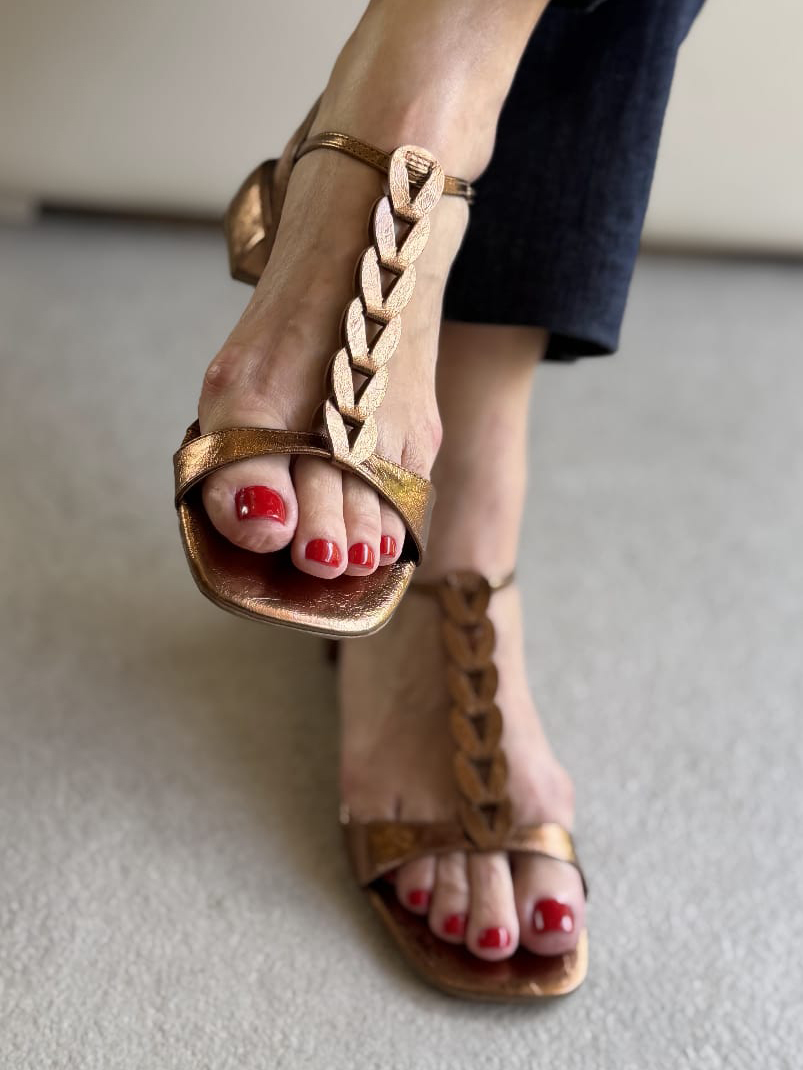 A sandália possui tira trançanda e salto bloco baixo, trazendo conforto ao modelo. Versátil, vo bem do office ao happy hour, combinando com as mais diversas peças, do jeans à alfaiataria.