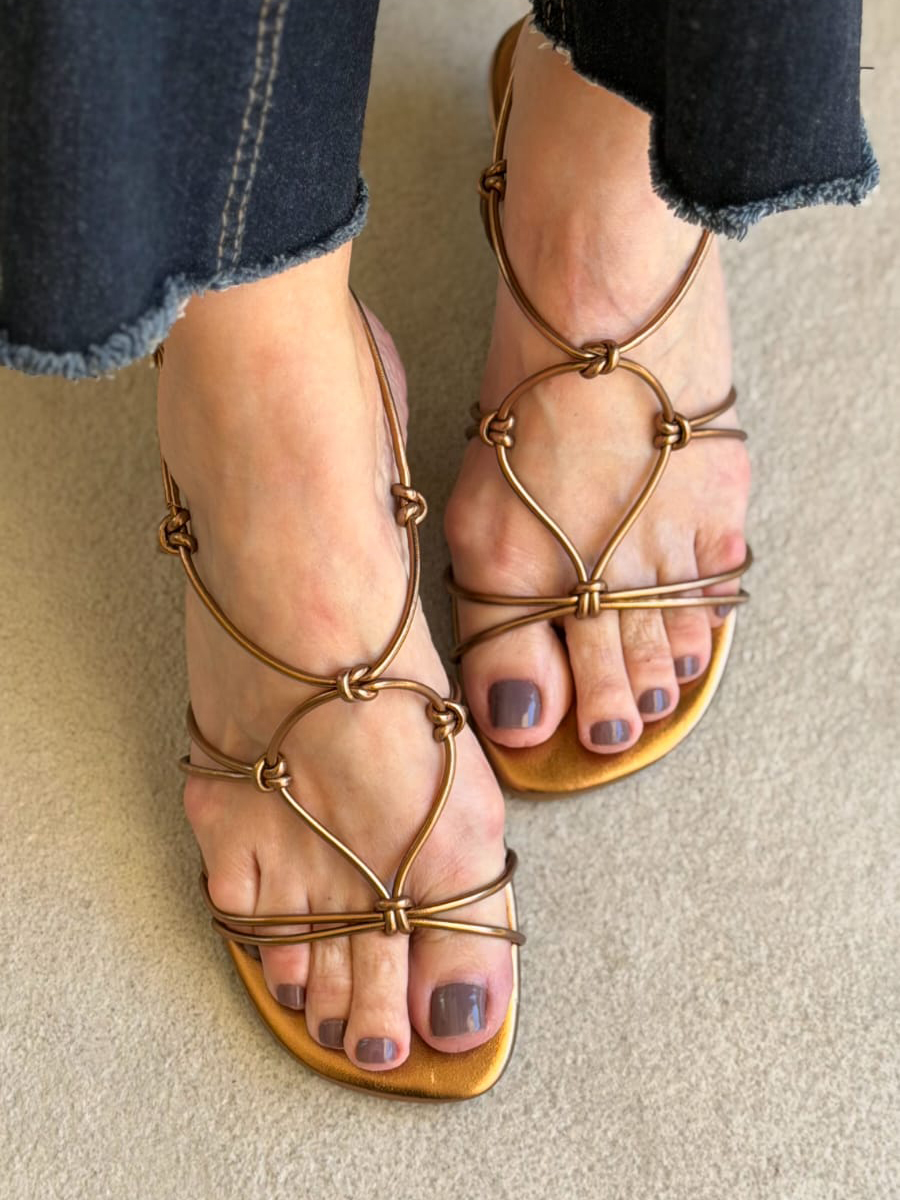 A sandália Ilha Bela tem design delicado, com nozinhos nas tiras finas. É perfeita para seus looks de verão. Use e abuse!!