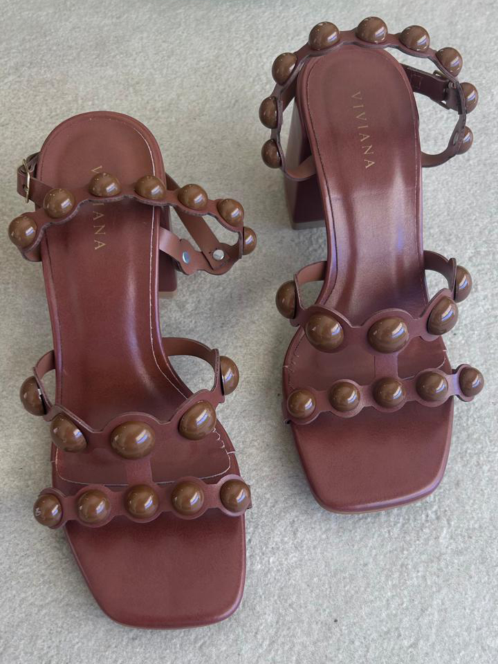 A sandália de salto bloco é sinônimo de estilo, conforto e praticidade. Com aplicação das esferas no mesmo tom , ela garante sofisticação aos seus looks. Não pode faltar em seu closet!