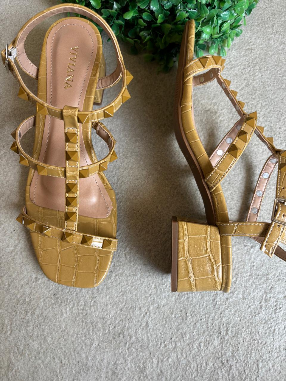 A sandália de salto bloco é sinônimo de estilo, conforto e praticidade. Modelo com Spikes garante o ar urbano, podendo ser usado com as mais diversas combinações . Não pode faltar em seu closet!