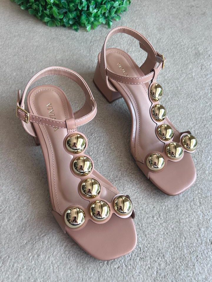 A sandália de salto bloco é sinônimo de estilo, conforto e praticidade. Com aplicação das esferas no mesmo tom , ela garante sofisticação aos seus looks. Não pode faltar em seu closet!